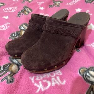 UGG Chocolate Suede Mules with Wooden Heel