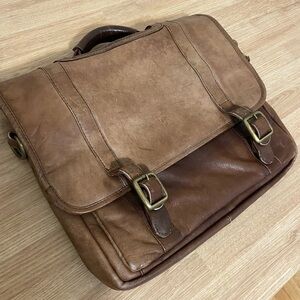 Frye Brown Leather Briefcase Laptop Messenger Bag Distressed