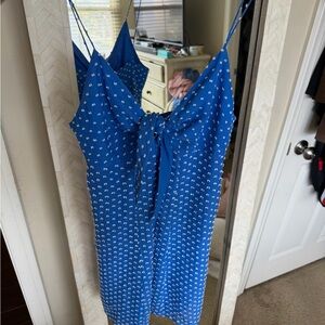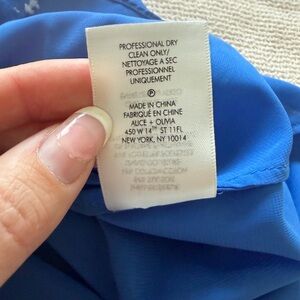 Chic blue dress with white accents. Elegant and modern style. In perfect condition! Retailed for $495. Fits so well! #aliceandolivia #coquette #coastalcowgirl #designer #polkadot #scandigirl