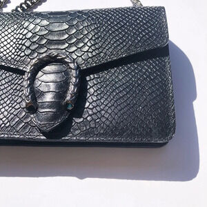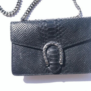 Borse in Pelle Black Leather Chain Strap Crossbody Shoulder Bag