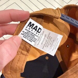 NWOT. Brown and navy hat with rectangular patch on front. Rainbow design. Adjustable snapback. MAD Engine brand.
