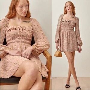 Reformation Morris Long Sleeve Ruffle Mini Dress in Melody Pink Size 12