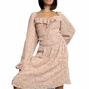 minidress, floral , smocked, pink, squareneckline, short, sexy, chiffon, casual, modern, classic, chic, spring, summer, winter, fall, date, datenight, girly, sweet, brunch, babyshower, bridalshower