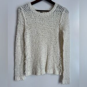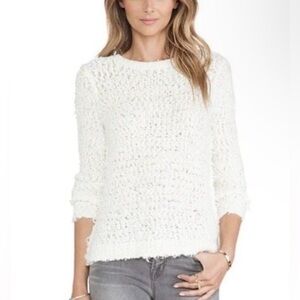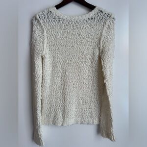 Free People September Song Fuzzy Pullover sweater Small Cream sheer popcorn knit