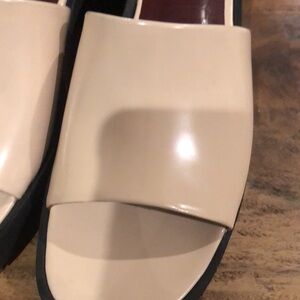 Elevate your look with these STAUD platform mules. Cream upper with a bold black sole. Perfect for a modern touch.