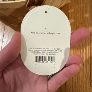 Color: tan/natural with brown faux leather handles