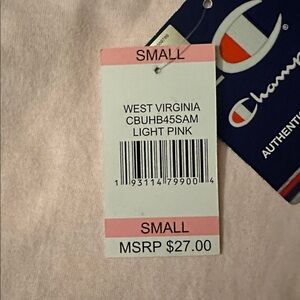 NWT West Virginia Mountaineers Athletics Champion Light Pink Long-Sleeve Tee, S