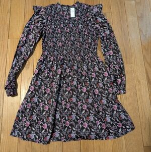 Nwt Women's Gap Black Ruffle Long Sleeve Midi Floral Dress Size Medium