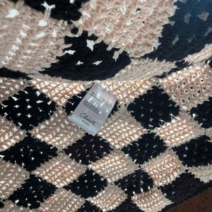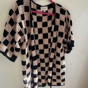 Crochet Gingham Cardigan 100% Cotton Black and Cream Checkered Hand Knit
