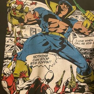 Bowie sweater has a mended hole not very noticed on sleeve, added in very little due to this. Fits like a more fitted female small.