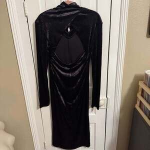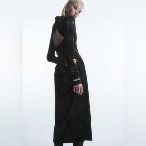 COS Open Back Velvet Midi Dress Black Small