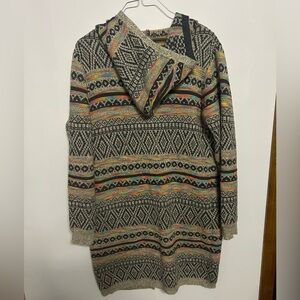 Monteau Multicolor Hooded Cardigan Duster Aztec Colourful