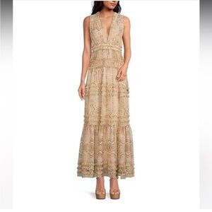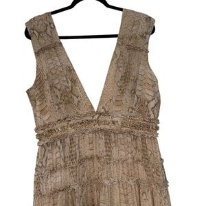 Gianni Bini Athena Snake Print Crinkled Chiffon Plunging A-Line Maxi Dress
