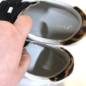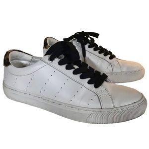 J. CREW "SATURDAY SNEAKERS" WHITE LEATHER & ANIMAL PRINT ACCENT SNEAKERS (6.5)