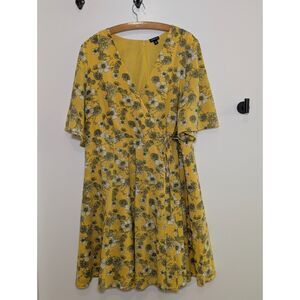 Torrid Summer Floral Midi Dress Sze 20 Yellow Black White Flowy Boho Cottagecore