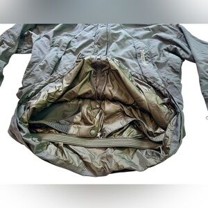 Jacket is in preowned condition - there is a 1.5/2 inch slit through the jacket on the upper back right by the neckline - please see pictures posted. This can easily be sewn back together.