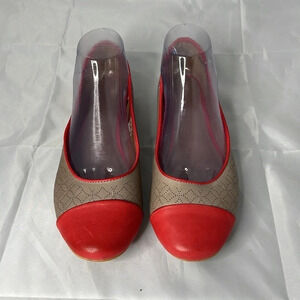 Women’s coral red and taupey grey Fossil 2 Tone Leather Ballet Flat Shoes.