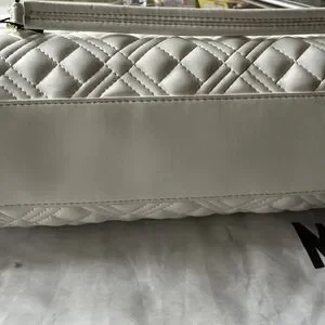 Chic quilted design with gold-tone accents. Stylish and versatile for any outfit.