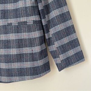 Elevate your style with this preppy plaid blazer jacket. Perfect for any occasion, this jacket features a classic design in a versatile blue color. Ideal for layering and adding a touch of sophistication to your wardrobe.
