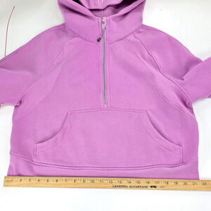 Lululemon Scuba Oversized 1/2 Zip hoodie in pink women’s size M/L featuring Light Cotton Terry fabric and relaxed athleisure fit.