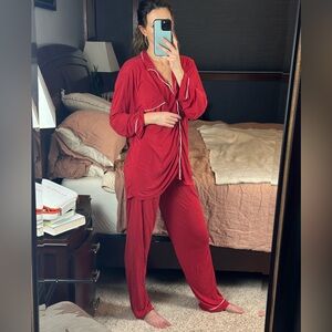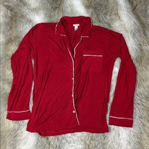 Eberjey Button-Up Pajama Set Long Sleeve Top & Pants | Small | Red