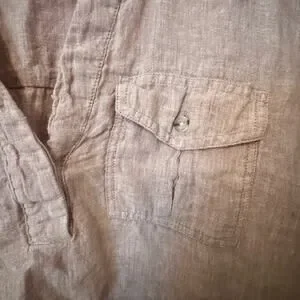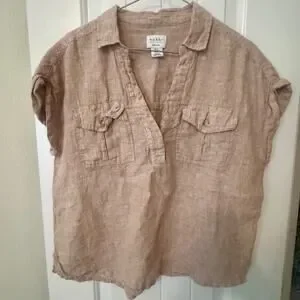Nicole Miller 100% Linen Tan Button Down Shirt