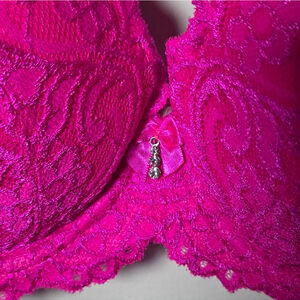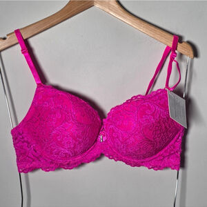 Smart & Sexy Lace Push Up Bra Hot Pink Fuchsia 34C Underwire Molded Cups NEW