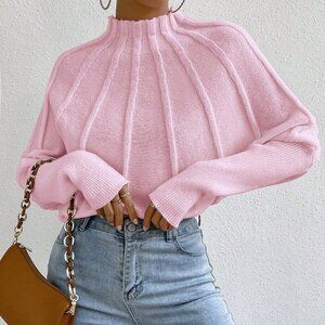 Add a pop of pink to seasonal outfits with this casual stand‑collar pullover sweater. Rib‑knit construction offers gentle stretch while the regular fit drapes comfortably over the body. Batwing sleeves provide relaxed movement, and the regular‑shaped hem finishes the piece at a classic length. Ideal for spring and fall layering, this versatile sweater blends effortless style with practical comfort.