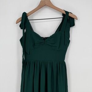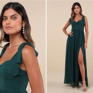 Keywords: Lulus dress, green maxi dress, tie strap dress, sleeveless dress, formal dress, wedding guest dress, party dress, evening dress, special occasion dress, flowy dress, midi dress, summer dress, women's dress, size M dress, elegant dress