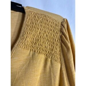 DOKOTOO Mustard Yellow Smocked V Neck Long Sleeve Tunic Top Shirt Womens XL