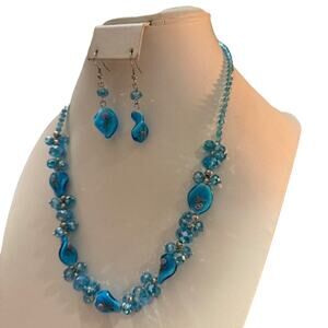 Stunning Handcrafted Blue Glass & Crystal Beaded Jewelry Set