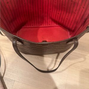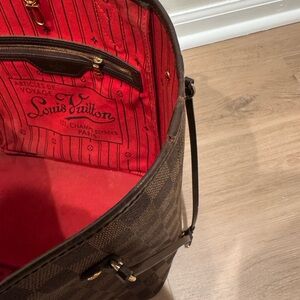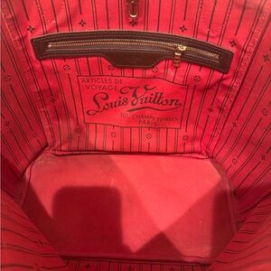 Louis Vuitton Neverfull MM size with red interior. There is some wear on the trim, corners, and handles as shown in pics but it still in good condition and has lots of life left.