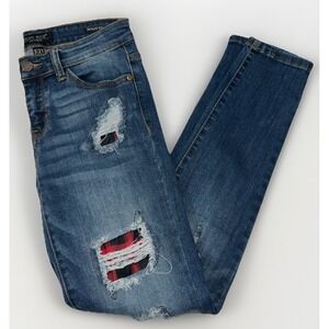 Women's Judy Blue Skinny Fit Jeans Stretch Buffalo Plaid Patchwork Sz 27 JB8268