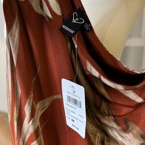 • Burnt orange tropical leaf print