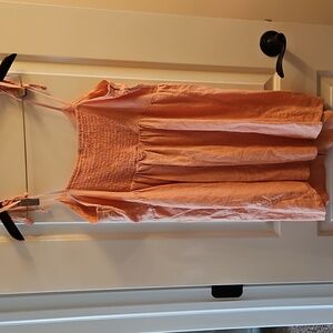 Aerie, American Eagle, Linen Blend, Mini Dress, Sundress, Babydoll, Smocked Back, Tie Straps, Button Front, Pockets, Peach, Coral, Orange, Summer, Vacation, Beach, Travel, Resort Wear, Coastal, Cottagecore, Boho, Feminine, Casual, NWT (if applicable - adjust based on actual condition), Y2K, Aesthetic, Breathable, Lightweight