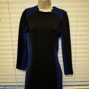 ETC Women Colorblock Bodycon Dress Size S Long Sleeve Black & Blue