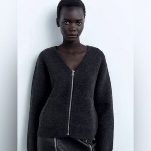Zara 100% Wool Knit Zippered Cardigan Jacket, size large.