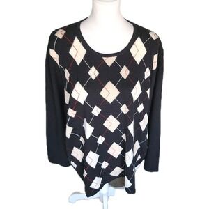 Hampshire Studio Sweater Womens 3X Plus Black Cream Argyle Pullover Preppy Y2K