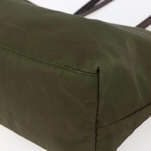 PRADA Tote Bag Nylon Khaki Silver Auth 150572