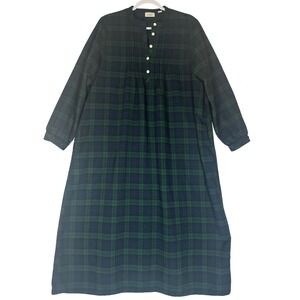 LL Bean Scotch Plaid Flannel Nightgown Sz M Long Sleeve Cotton Pockets Cabincore