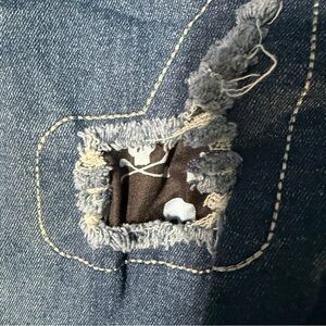 Unbranded Jeans Skull Distressed Ripped Size 5x Equivalent Of Us Size 2/3x 22. Rough unstretched measurements in photos. size tag reads 5x, it is not us sizing. Please view measurements in the photos to ensure proper fit. Fun & funky jeans. Good preowned condition. Minor signs of wear. Please see photos as part of the description.