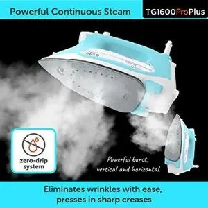 RAPID RESPONSE TRIPLE PLAY STEAM - Makes the ProPlus steamier and hotter than ever! Rapid heating, 1800 watts for powerful horizontal, vertical, and variable steam bursts, that wipes out wrinkles and presses in sharp creases. Anti-drip prevents leaks, and the new anti-scale system keeps the ProPlus steam working stronger and longer. Every iron is fully water tested before leaving the factory; that’s why you might find a few drops still in the tank.