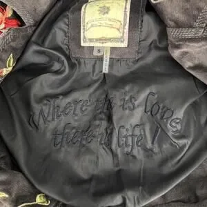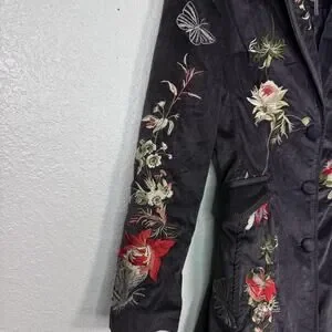 Paparazzi By Biz Coat Womens Small Velvet Embroidered Floral Butterfly Boho