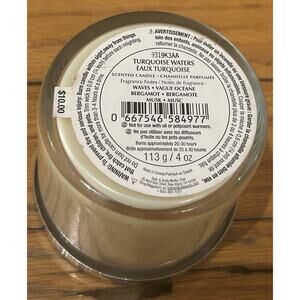 The New Bath & Body Works 4oz Turquoise Waters Candle is a white jar/container candle that is part of the Home & Garden category. This scented candle is designed by the well-known brand Bath & Body Works, known for its high-quality home fragrance products. With its refreshing turquoise waters scent, this candle is perfect for creating a relaxing and inviting atmosphere in any room. Enjoy the soothing aroma and soft glow that this candle has to offer.