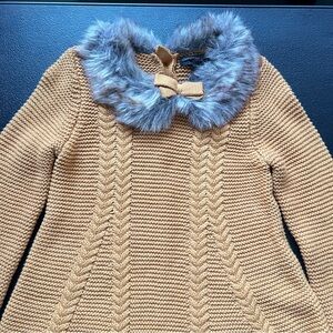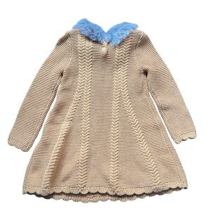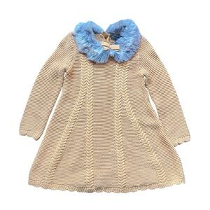 Christian Siriano Mustard Knit Long Sleeve Dress Faux Fur Collar Size 24 Months