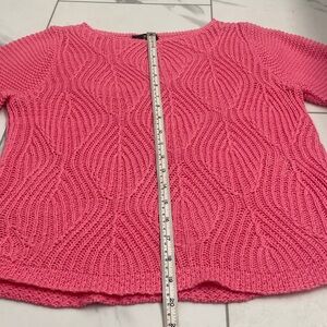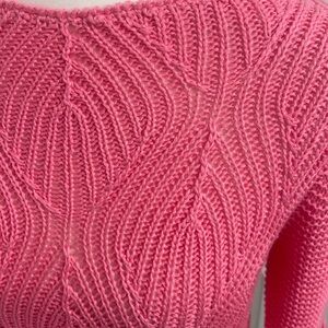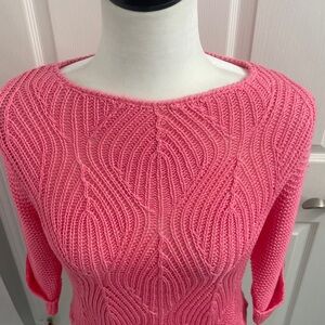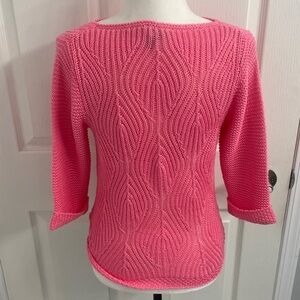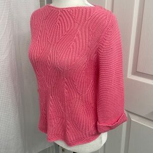 Marbel Pullover Sweater Pink Round Neckline 3/4 Sleeves Chunky Rib Knit Sz XS