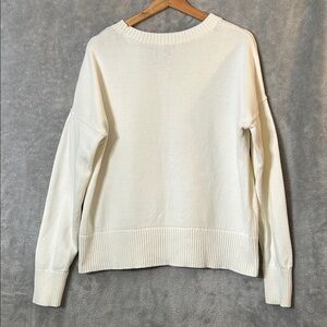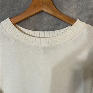 Embrace timeless style with this classic cream crew neck sweater. Perfect for layering and versatile for any wardrobe. Size M/T, 10/12