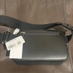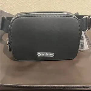 Compact and versatile belt bag. Ideal for hands-free convenience. Sleek black design.