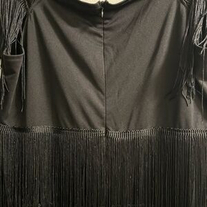 Sexy dress above knee with elegant fringe details. Can be worn off the shoulders or paired with a crop top cardigan. nice for curvy women without exposing to much. Gaspy vintage style Perfect for a night out or a 1920 party theme worn twice. 2 Xl