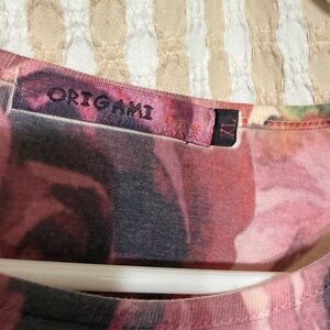 Chic women's blouse with a stunning floral pattern in cream and pink with lace detail on sleeves. Ideal for elevating your wardrobe with a touch of elegance.